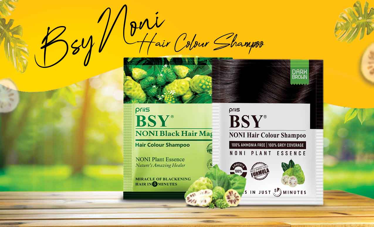 BSY Noni Hair Colour Shampoo 20ml | 100% Natural Black Colour (20ml x 10)